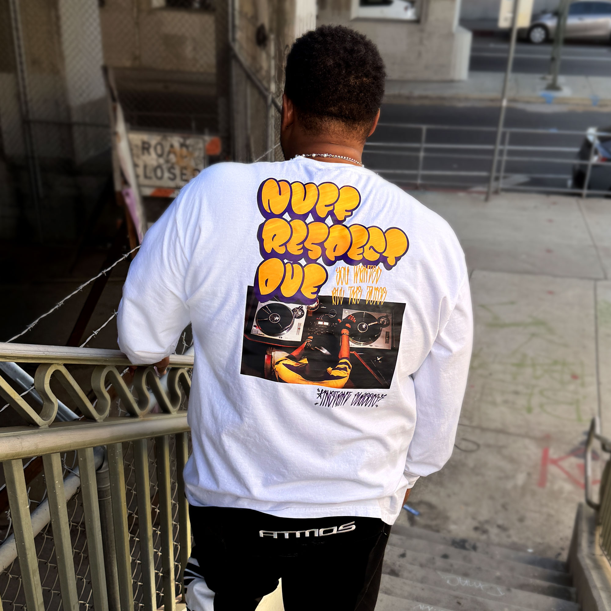 This is a unisex long sleeve tee. A special limited edition drop for Mr.Sonny James’ Livestream DJ sets. You can catch Instant Classic every Monday night on Twitch at 8pmET/5pm PT. This is the first in a series that celebrates decades of classic jams. Get a discount by tuning in each week to get the 20% OFF code during the stream. This design features Tallhand a custom handstyle font by Hyde’s Lovelies & Curvazoid.